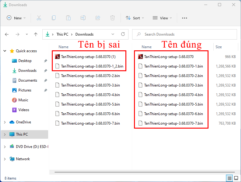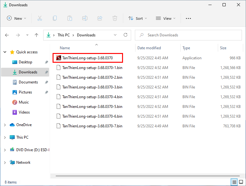Vào thư mục chứa các tập tin vừa tải về (mặc định khi tải về sẽ ở thư mục Downloads). Nhấp đúp chuột vào file có đuôi .exe để cài đặt. Lưu ý: tuỳ vào phiên bản game mà số lượng tập tin có thể khác bài hướng dẫn này, vui lòng tải đủ các tập tin cài đặt tại trang chủ.