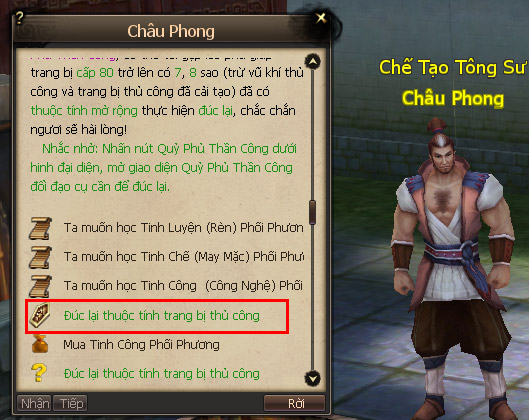 Sau khi nhận Tử kim sa hoặc Tử kim thạch, bằng hữu hãy đến gặp Châu Phong tại Tô Châu (367,249) để đúc lại thuộc tính mở rộng của trang bị thủ công (trừ vũ khí thủ công và trang bị đã cải thiện) 7 sao, 8 sao trên cấp 80.