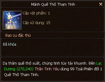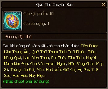 Ngoài ra bằng hữu có cơ hội nhận được: Tiềm Năng Quả, Lam Diệp Thảo, Phỉ Thuý Tâm Tinh, Huyết Mạch Kim Đan, Chú Văn Huyết Ngọc, Hồn Băng Châu (Cấp 3), Trùng Lâu Đới, Mão, Hộ Uyển, Giới Chỉ, Hộ Phù 7,8 Sao, Hào Hiệp Huy Hiệu,…