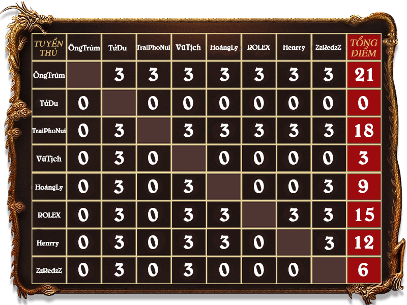 Chúc mừng cao thủ ÔngTrùm đã giành giải vô địch, TraiPhoNui đạt giải Á quân và ROLEX đạt Hạng Ba.